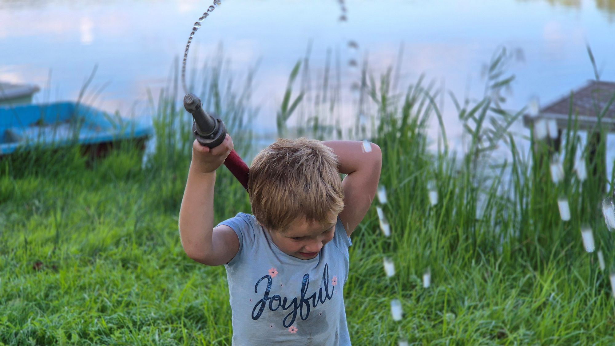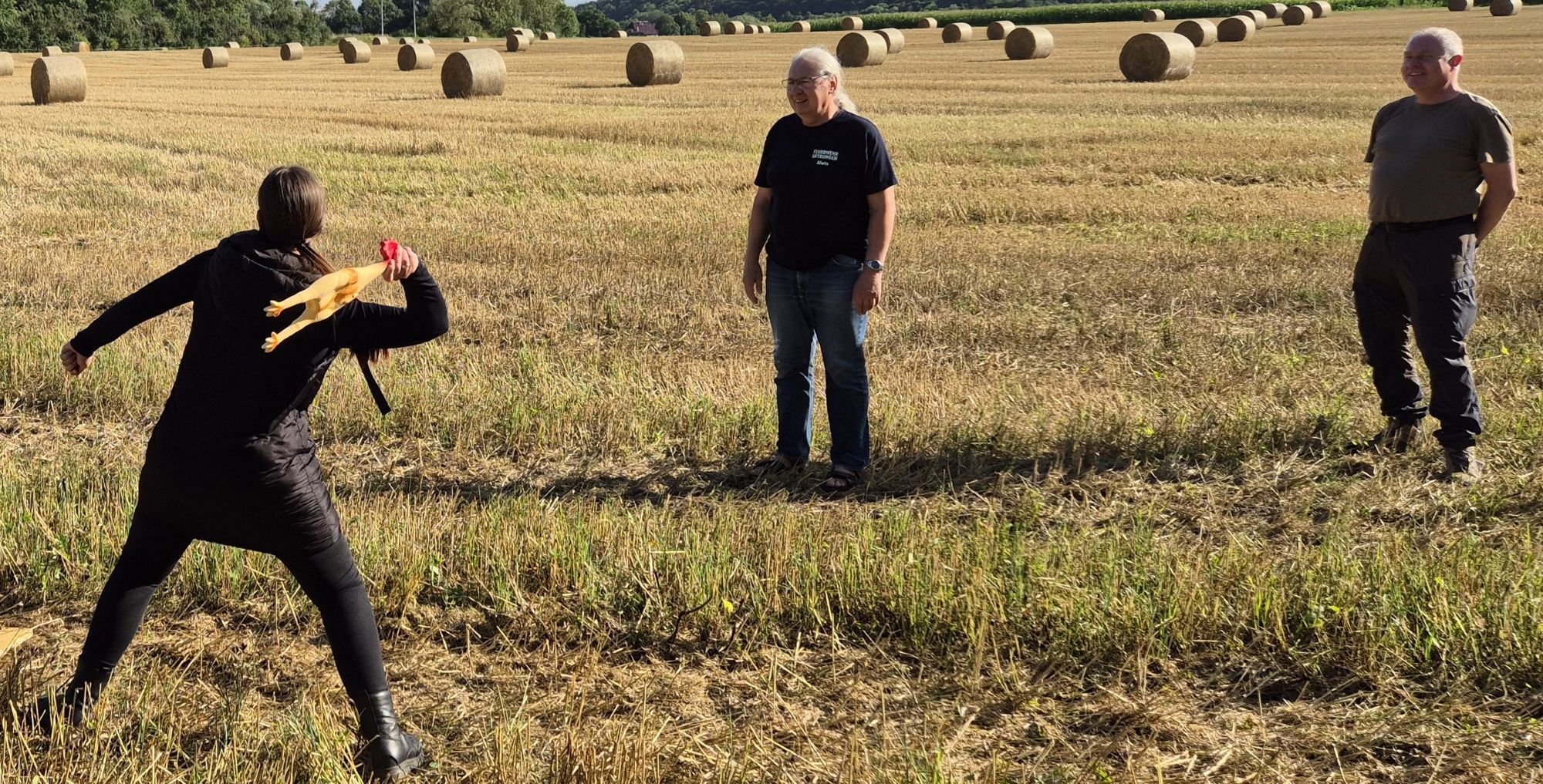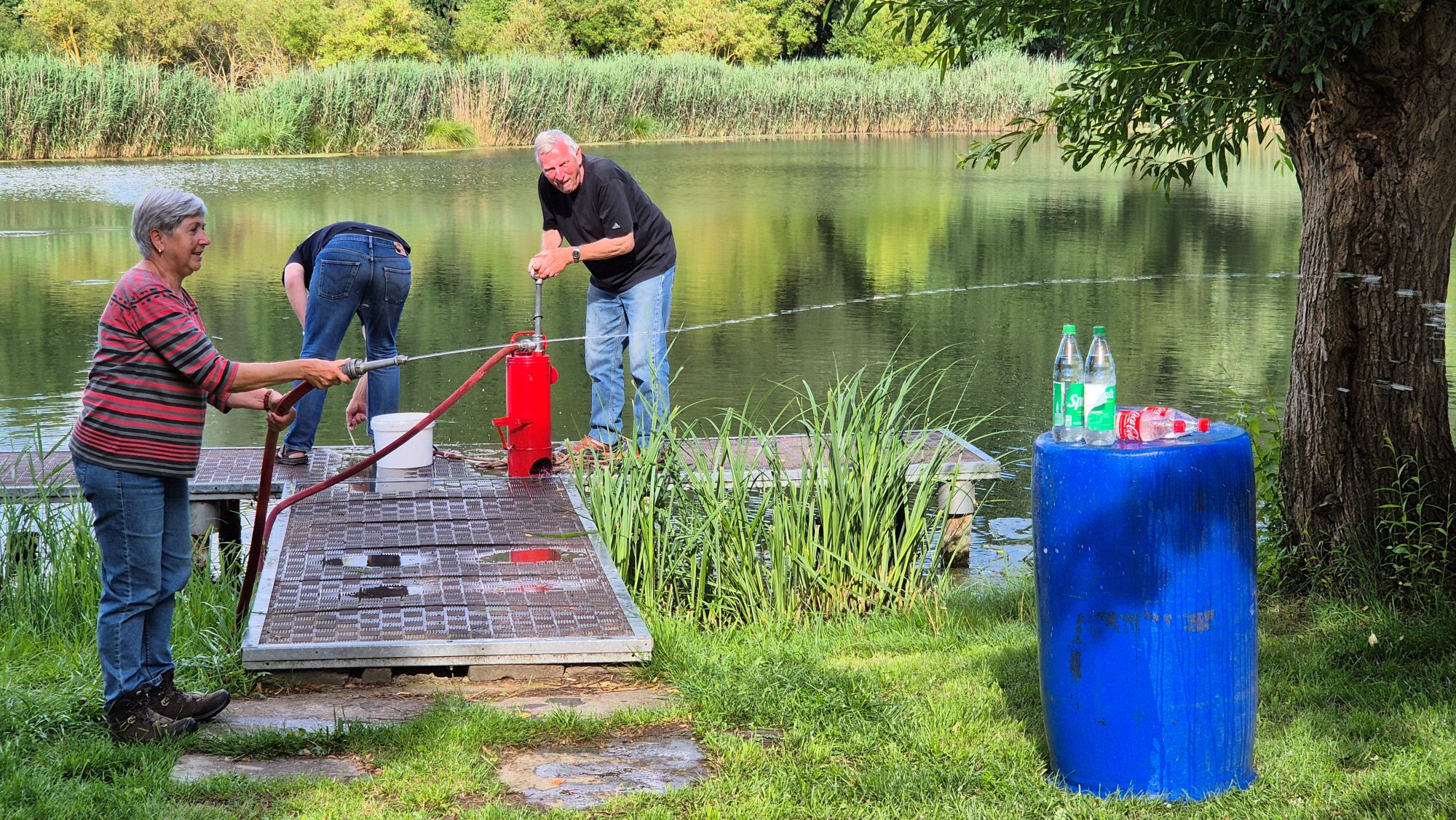 Am Ziel angekommen, erwartete uns bereits das liebevoll vorbereitete Anglerhäuschen am Uftrunger See. Das Team aus fleißigen Partnerinnen und Feuerwehrfrauen hatte Kuchen gebacken und Kaffee bereitgestellt – perfekt, um neue Energie für den dritten Teil des Tages zu tanken: unsere spannenden Gemeinschaftsspiele! Ziel war es, die „beste“ Mannschaft zu ermitteln. Disziplinen wie Gummihuhnweitwurf, Zielspritzen mit der Kübelspritze, Leinenbeutelzielwurf oder das kreative „Wortelegen“ mit einem B-Schlauch sorgten für jede Menge Spaß und Gelächter.