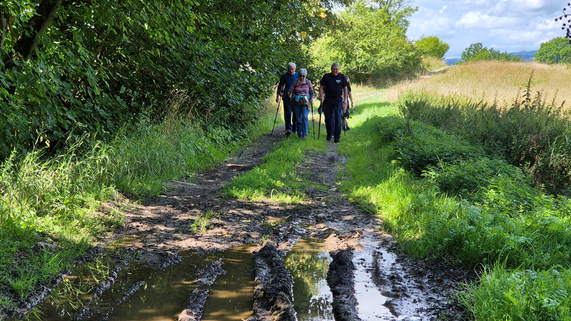 Mit einer fröhlichen Truppe starteten wir in die erste Etappe unseres Ausflugs. Der Weg führte uns durch unser wunderschönes Dorf, vorbei am Krummen Baum, über den Gewindsgraben und den Hagen hinauf – ein echtes Naturerlebnis!
